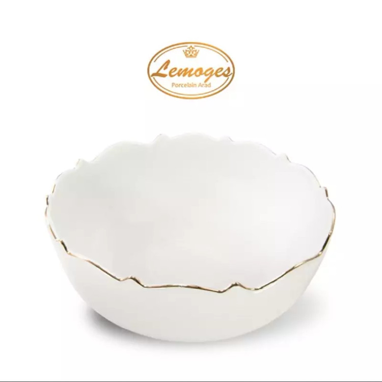 کاسه چینی گرد موج یک خط طلا برند لمون
