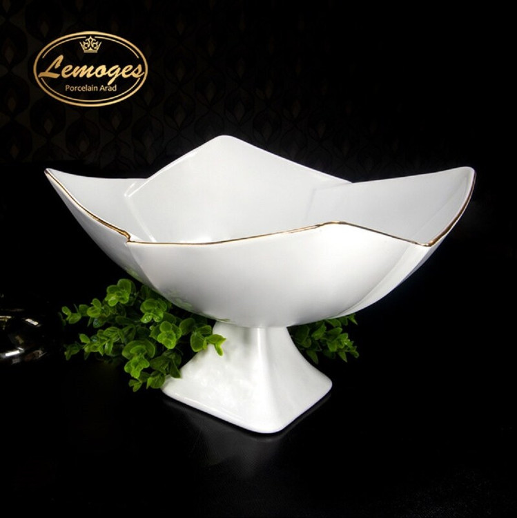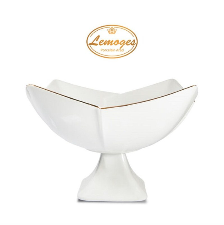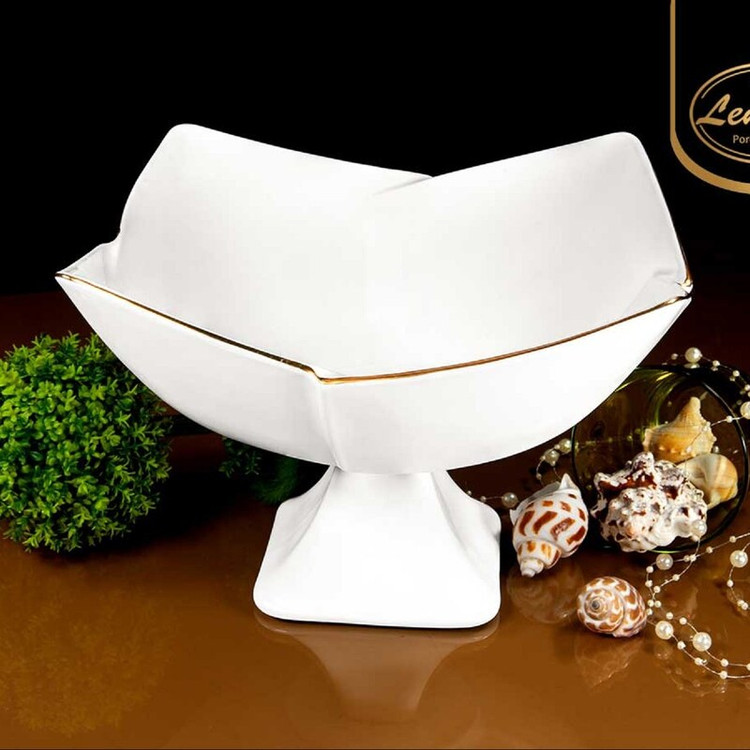 کاسه چینی لاله بزرگ پایه دار یک خط طلا برند لمون